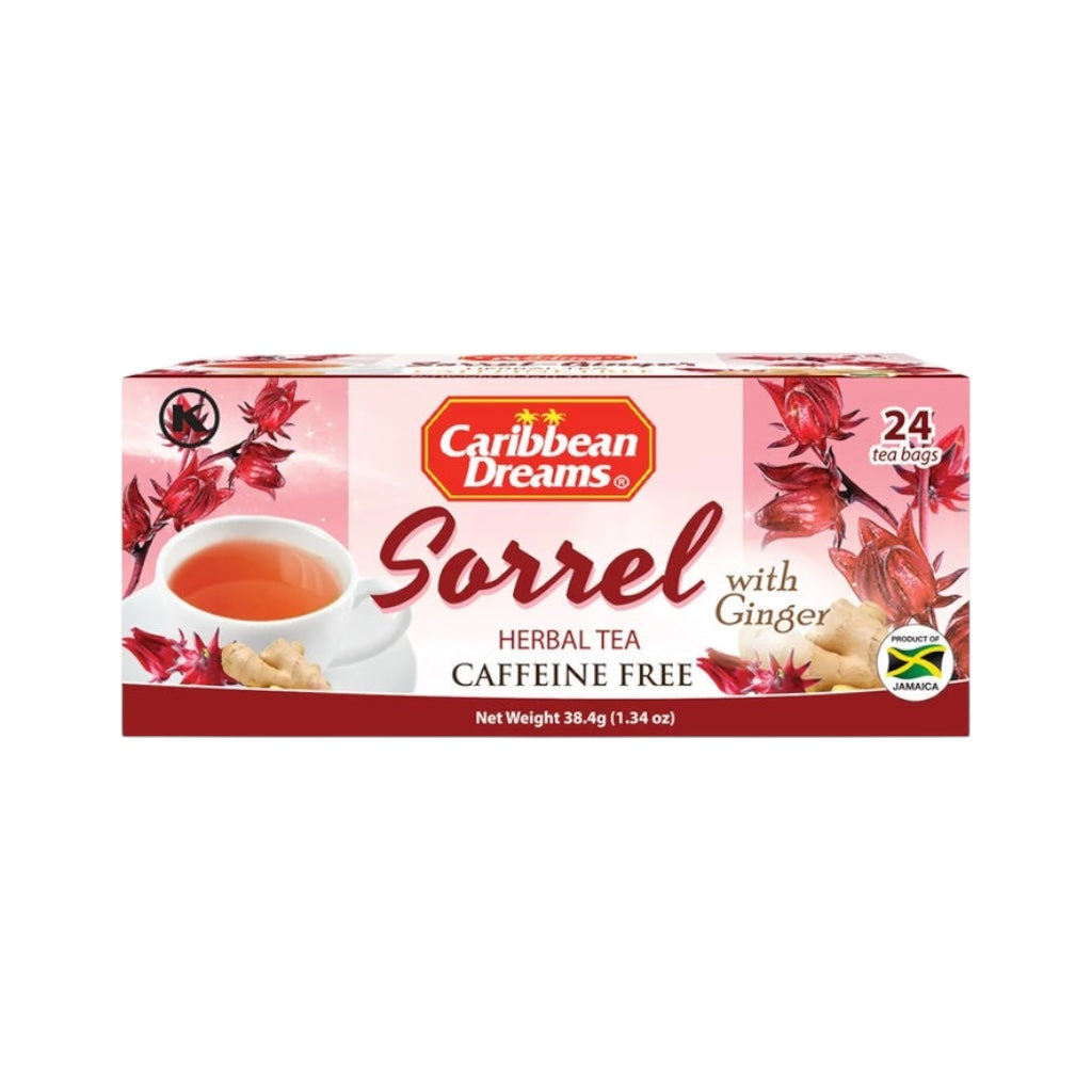 Enjoy the vibrant flavor of the Caribbean with Caribbean Dreams Sorrel with Ginger Tea. Made from hibiscus (sorrel) petals and spicy ginger root, this caffeine-free herbal tea offers a refreshing, tart taste with natural health benefits. Perfect hot or cold, it’s a flavorful way to support digestion and immune health.