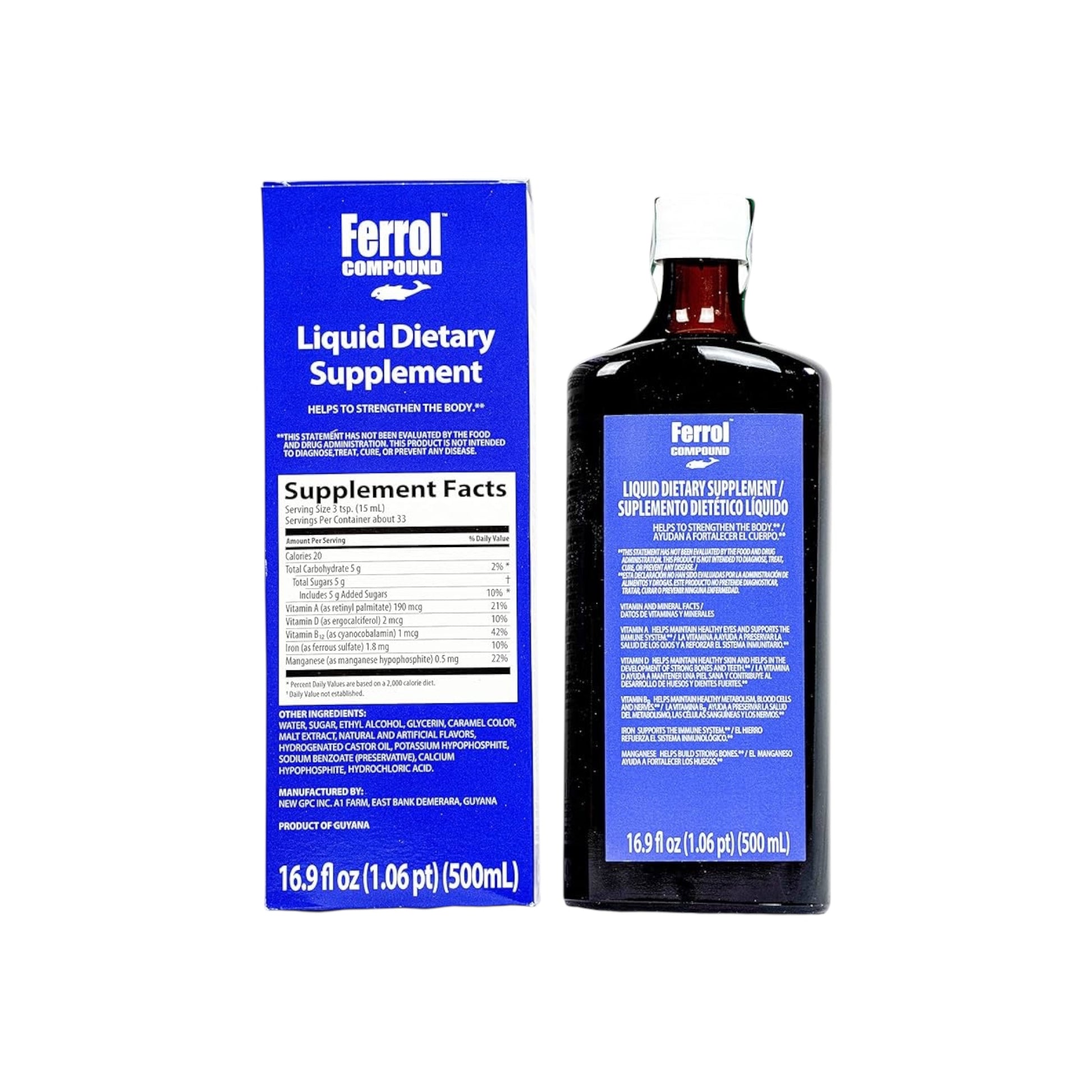 Ferrol Compound is a trusted liquid dietary supplement formulated to help boost energy levels, support blood health, and aid in the body's natural recovery process. Enriched with iron, B vitamins, cod liver oil, and essential nutrients, Ferrol is widely used for promoting overall wellness in both children and adults.