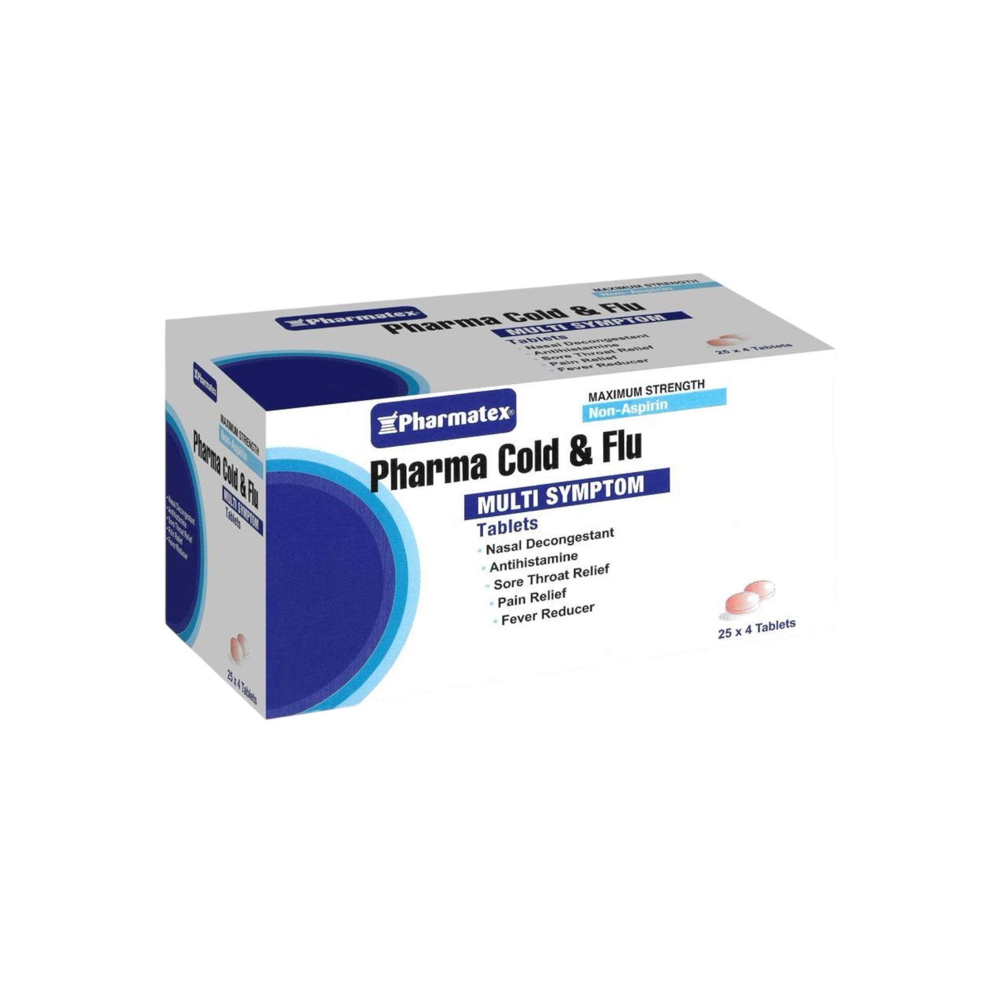 Pharma Cold & Flu Multi-Symptom Tablets are designed to tackle the most common and disruptive symptoms of colds and flu—so you can feel better, faster. Each tablet delivers targeted relief to help reduce fever, relieve aches and pains, clear nasal congestion, and ease cough and sore throat.