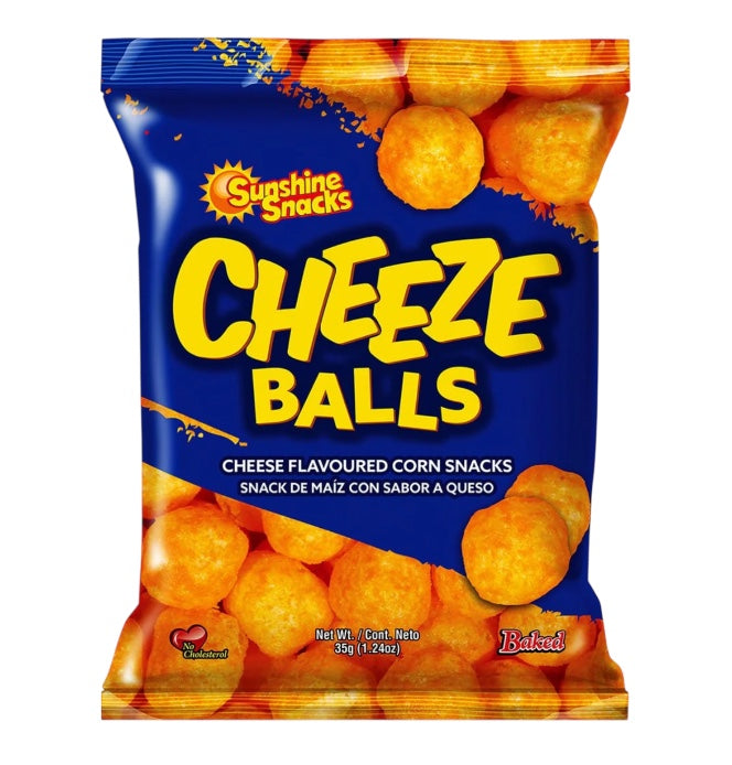 Sunshine Snacks Cheeze Balls are a classically delicious cheese flavoured corn snack that's perfect for any occasion! They are made from real cheese and are baked for a taste of irresistibly cheesy goodness.